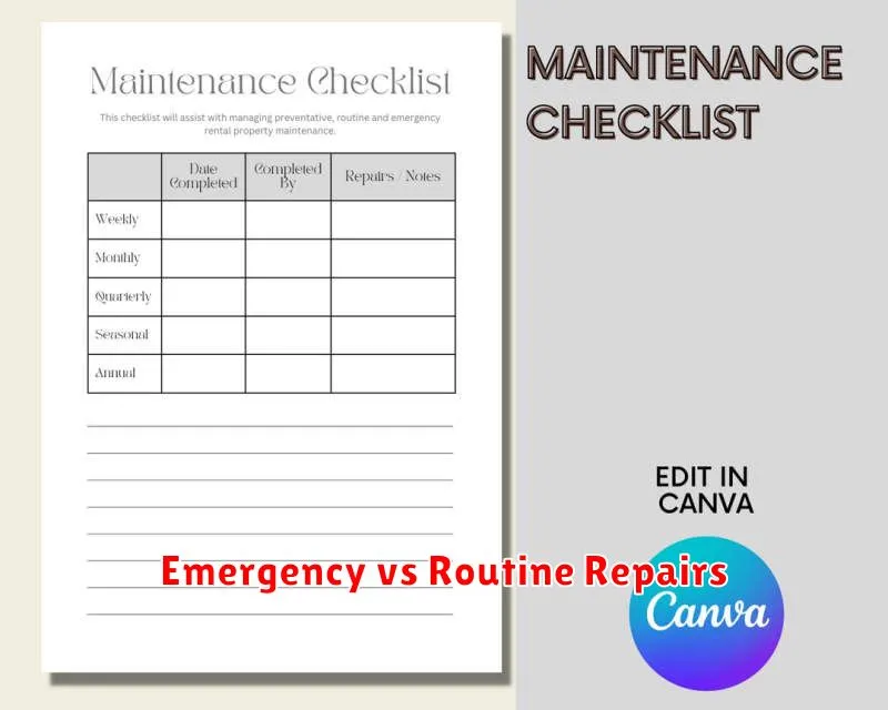 Routine repairs, on the other hand, address less urgent issues that don’t pose an immediate threat. These are typically handled within a reasonable timeframe and might include things like a dripping faucet, a sticking door, or a minor appliance malfunction. A clear understanding of this distinction helps ensure prompt action for critical situations while allowing for scheduled maintenance for less pressing concerns.