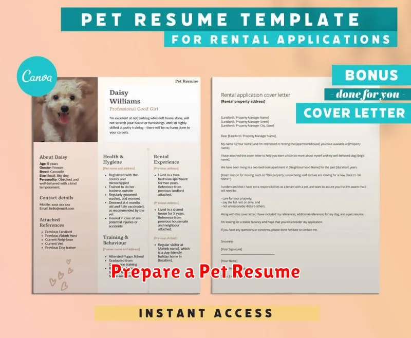 - References: Include contact information for previous landlords, pet sitters, or veterinarians who can vouch for your pet’s good behavior.