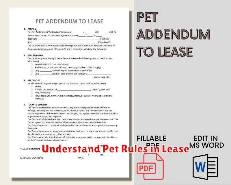 Pay close attention to clauses addressing pet-related damages. Understand your responsibilities for repairing any damage caused by your pet. Some leases may also specify designated pet areas within the property.